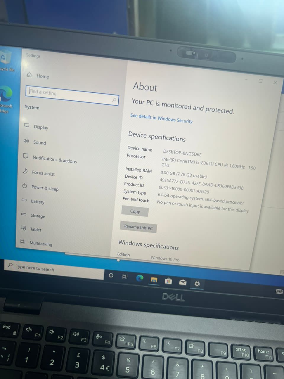 Dell latitude 7390Core i5 processor 16gb ram 256gb ssdKeyboard light Touchscreen Face ID Fingerprint Display size 13.3Clean as whistle Free deliv